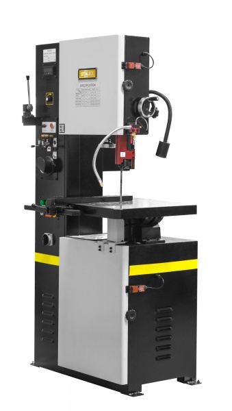 Вертикальные ленточнопильные станки — многофункциональное оборудование, с помощью которого можно распиливать заготовки из алюминия, латуни, меди, небольшие изделия из мягкой стали, а также плитки, дерева, пластмассы, прессованной бумаги и волокнистых материалов. Одна из основных особенностей вертикального ленточнопильного станка возможность продольного распила заготовки. Возможность уменьшения ширины пропила — одно из самых главных достоинств вертикальных ленточнопильных станков. Благодаря этому свойству устройства данного типа можно применять для резки дорогостоящих сплавов, так как показатели потери материала будут весьма несущественными. Высокая производительность и выгодная цена вертикального ленточнопильного станка совершенно не влияют на энергопотребление, которое удерживается на довольно низком уровне. Применение данного оборудования позволяет оптимизировать расход материала, снизить затраты по потреблению электроэнергии, увеличить производительность. Вертикальный ленточнопильный станок по металлу — инструмент, позволяющий осуществлять следующие виды резки: прямую, криволинейную, наружную, внутреннюю, ручную. Вертикальные ленточнопильные станки – это универсальные станки, которые сочетают в себе: простоту; мощность; эффективность; точность; качество. Станок имеет плавную регулировку скорости (вариатор), а также оснащён направляющей для заготовок на рабочем столе. Конструкция станка имеет направляющие головки с пластинами, верхняя подвижная и нижняя неподвижная для направления полотна. Наклон рабочего стола осуществляется в обе стороны: 45° влево и 15° вправо. При работе на станке, в случае обрыва полотна конструкция позволяет произвести ремонт. Для ремонта полотна станок оснащен: гильотиной для резки полотна сварка для соединения полотна на случай обрыва круг для шлифовки краёв полотна и сворного шва Особенности: Наклон рабочего стола в обе стороны: 45° влево, 15°вправо Воздушно-масляное охлаждение (требуется подключение внешнего источника воздуха) Плавная регулировка скорости (вариатор) с индикацией Высокая точность резки Станок оснащен электросваркой 2.4 кВА, гильотиной, шлифовкой для ремонта полотна Прочная стальная конструкция Возможность продольного распила заготовки